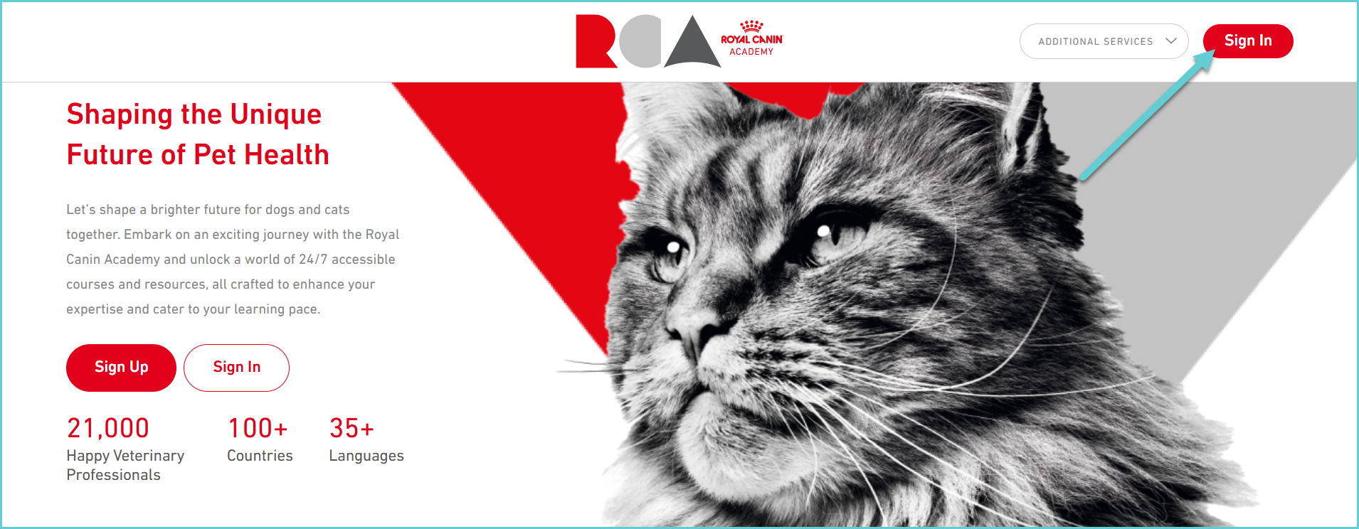 Internal and external users can log into Royal Canin Academy with an active account, only. Those with active accounts can use the ‘Sign In’ button is at the top of the Royal Canin Academy Sign-In Page www.royalcanin.com/academy, where they must enter their username and password.