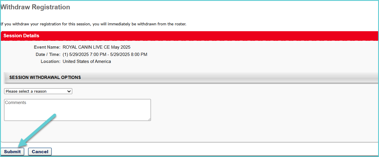 French Canadian SR Translation Pour vous retirer d’une séance, veuillez suivre les étapes suivantes : 1. Accédez à votre relevé actif en cliquant sur « En cours » sous votre photo de profil et votre nom en haut à droite de la page de bienvenue. |