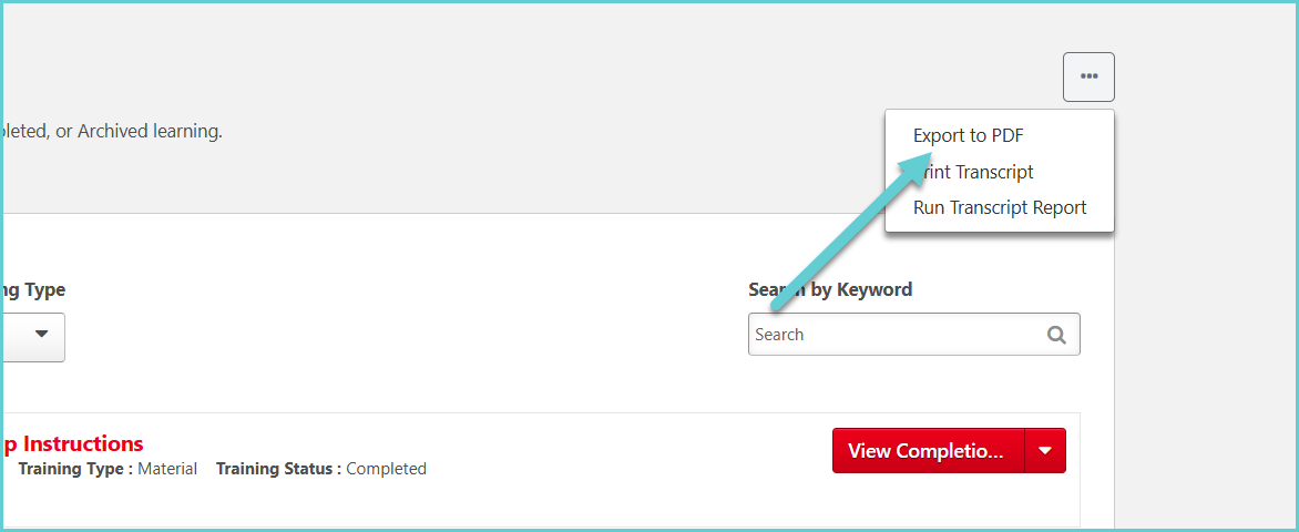 4. Then, select either ‘Export to PDF’ or ‘Print Transcript’.